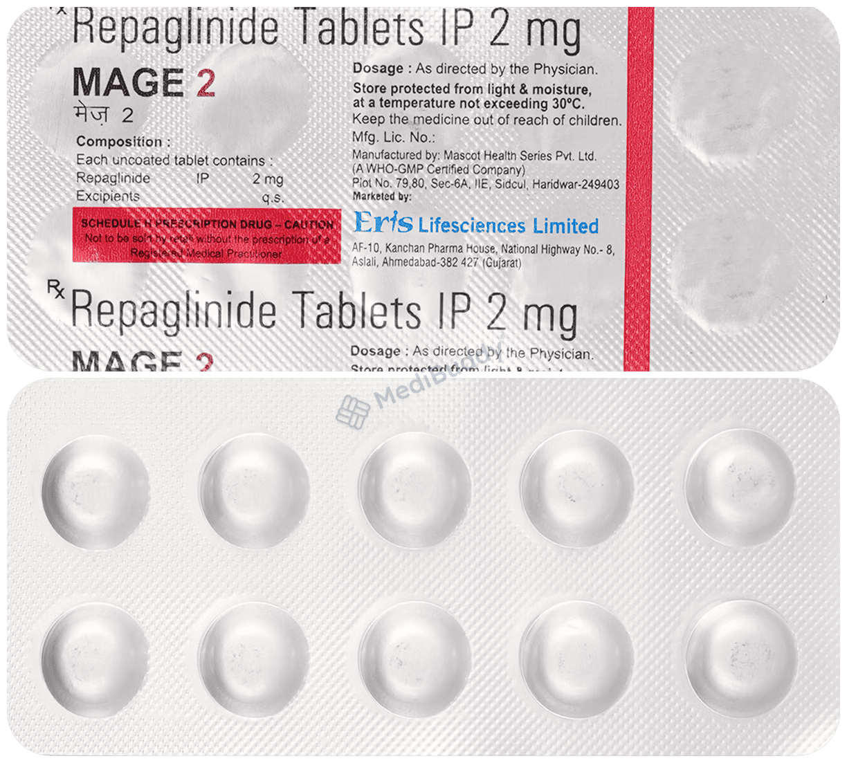 Mage 2mg Tablet, belonging to the group of anti-diabetic medicines, is specifically designed to help individuals with Type 2 diabetes mellitus. By increasing the production of insulin in the pancreas, this medication effectively lowers blood glucose levels, especially after meals. It is crucial to take Mage 2mg Tablet as prescribed to manage diabetes effectively. By keeping blood glucose levels in check, one can significantly reduce the risk of developing serious complications associated with diabetes, such as kidney damage, eye damage, nerve issues, and loss of limbs. Incorporating this medication into a routine that includes a balanced diet and regular exercise will empower individuals to lead a normal, healthy life. Mage 2mg Tablet acts swiftly to control blood sugar levels immediately after a meal, making it a valuable addition to the treatment plan for those whose blood sugar levels remain high and uncontrolled through diet and exercise alone. This medication can be used on its own or in conjunction with other medications, along with lifestyle modifications, to effectively regulate blood sugar levels for individuals with Type 2 diabetes.