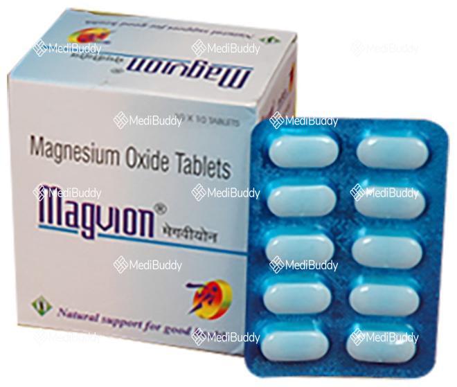 Magvion Tablet is a medication used to treat conditions such as acidity, intestinal ulcers, and stomach ulcers. It works by neutralizing the acid in the stomach and helping to maintain the balance between acid and alkaline in the body. It should be taken orally after meals, preferably at bedtime, and it is important to follow the dosage and duration prescribed by your doctor.