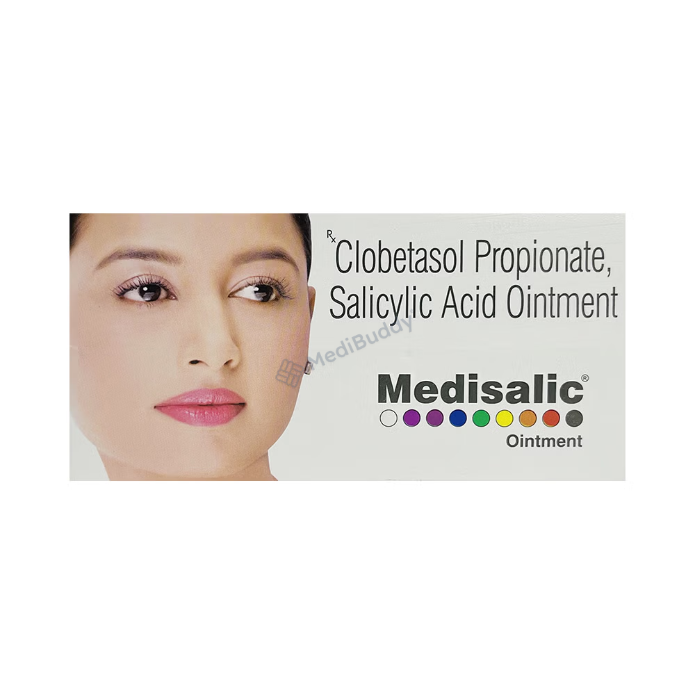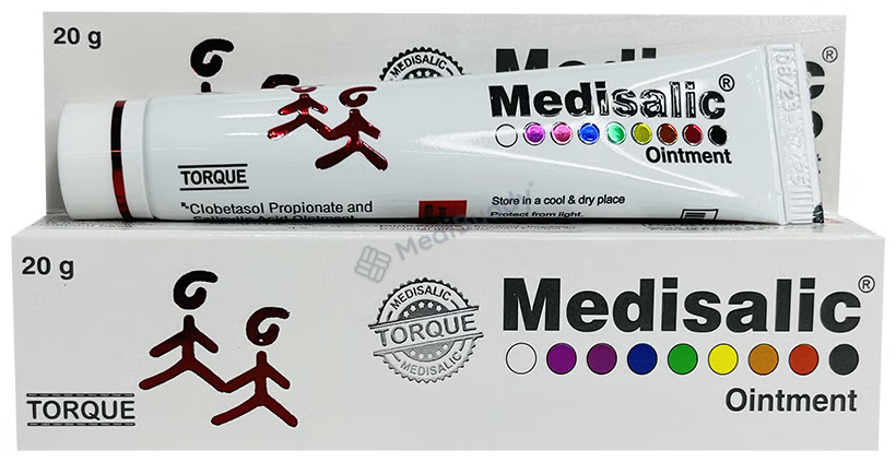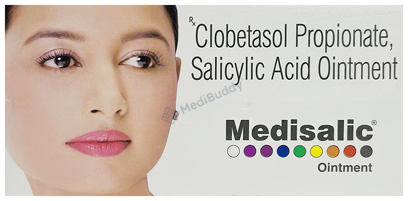 Medisalic Ointment, containing Clobetasol propionate and Salicylic acid, is a dermatological medication used primarily to treat skin conditions such as eczema and psoriasis. Eczema presents with patches of inflamed, itchy, cracked, and rough skin, while psoriasis leads to red patches with white scales due to rapid skin cell multiplication. Clobetasol propionate, a corticosteroid in Medisalic Ointment, blocks the production of chemicals causing redness, swelling, and itching. Salicylic acid, a keratolytic agent, softens the skin and promotes the shedding of dead cells.