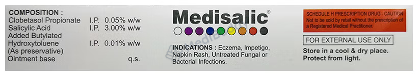 It is important not to apply Medisalic Ointment to open wounds, blisters, or lesions. Avoid using dressings or bandages unless advised by your doctor. This medication is not suitable for diaper rash. Prior to using Medisalic Ointment, disclose any history of liver/kidney diseases, diabetes, Cushing's disease, or blood circulation issues to your doctor. Pregnant or breastfeeding women should consult their healthcare provider before using this ointment.