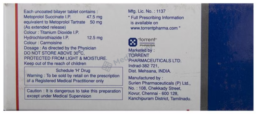 Metoprolol Succinate(50mg) + Hydrochlorothiazide(12.5mg)