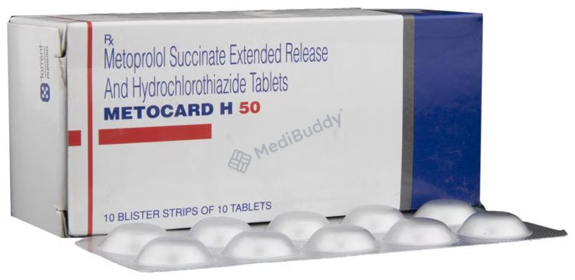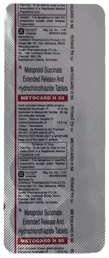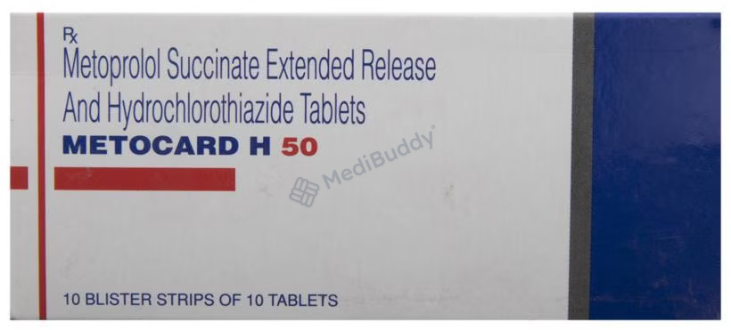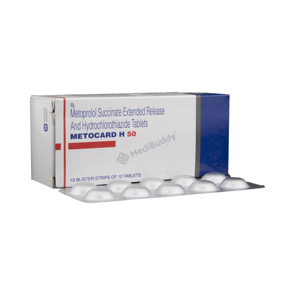 Metocard H 50 Tablet ER is a medication used to treat hypertension, also known as high blood pressure. When a single medication is not effective in controlling blood pressure, Metocard H 50 Tablet ER plays a crucial role in managing it. By reducing the chances of future heart attacks and strokes, this medicine improves the survival rate in patients who have experienced a heart attack. It is recommended to take Metocard H 50 Tablet ER with or without food, preferably in the morning to avoid frequent urination at night. Patients should continue taking this medication for the duration advised by their doctor, even if they start to feel better, as high blood pressure often shows no symptoms. Stopping the medication abruptly can worsen the condition. To complement the effects of the medicine, maintaining an active lifestyle through regular exercise, weight management, and a healthy diet is essential. It is important to follow the doctor’s guidance while using Metocard H 50 Tablet ER.