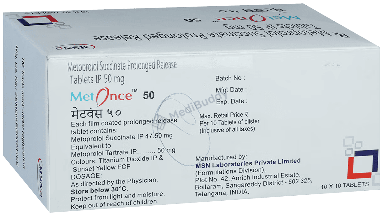 The dosage and frequency of Metonce 50 Tablet PR will be determined by your healthcare provider based on the specific condition being treated and its severity. It can be taken on an empty stomach or with a meal, but it is crucial to take it consistently at the same time each day to ensure optimal benefits. Patients may need to wait several weeks to experience the full effects of the medication, and in some cases, long-term usage may be required, even if they start feeling better earlier on. Discontinuing the medication abruptly can worsen the condition, especially in individuals with high blood pressure who may not experience obvious symptoms.