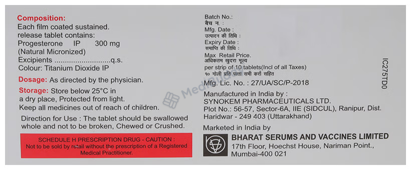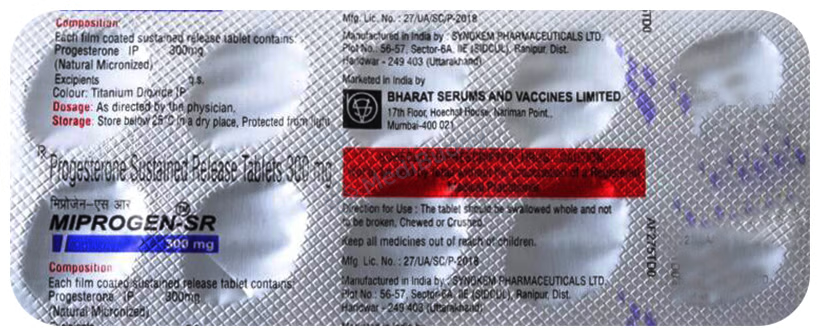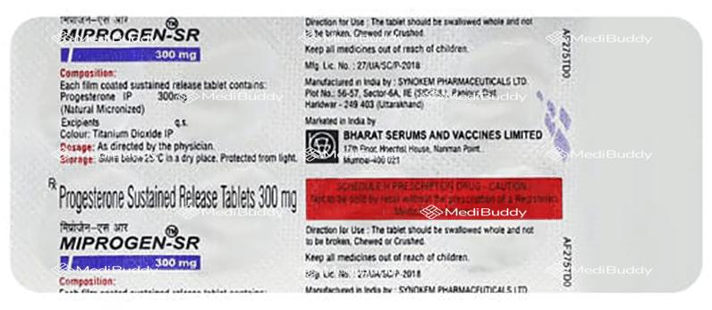 Miprogen 300mg Tablet SR contains progesterone, a natural female hormone that helps to address menstrual and pregnancy-related issues arising from hormonal imbalances. This medication is often prescribed alongside estrogen as part of hormonal replacement therapy to prevent endometrial hyperplasia, which refers to the thickening of the uterine lining. It is important to take Miprogen 300mg Tablet SR with food at the same time each day as directed by your doctor, even if you are feeling well.