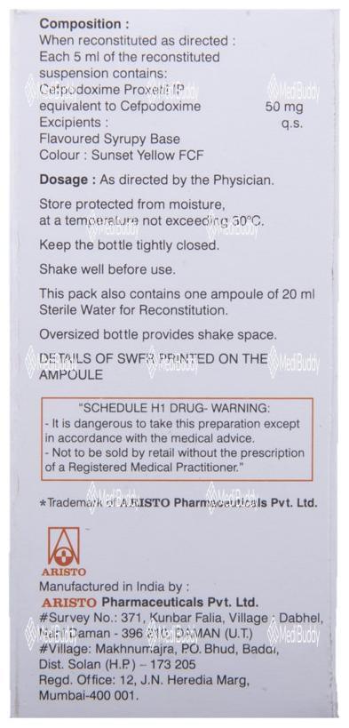 To use Monocef-O 50 Oral Suspension properly, it is important to follow your doctor's instructions on the dose and duration of the medication. Before using the syrup, carefully read the directions on the label. Use a measuring cup to ensure you take the correct amount and swallow it by mouth. It is recommended to shake the bottle well before each use to ensure the ingredients are properly mixed. Monocef-O 50 Oral Suspension should be taken with food to help with absorption and minimize potential stomach upset. By following these simple steps, you can effectively use Monocef-O 50 Oral Suspension to treat your condition as prescribed.