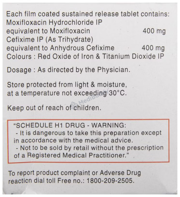 Moxifloxacin(400mg) + Cefixime(400mg)