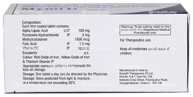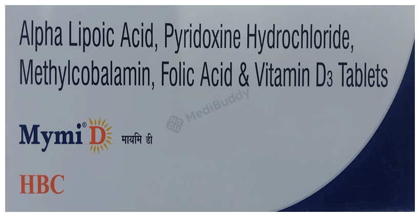 Mymi D Tablet is a nutritional supplement designed to address nutritional deficiencies and support the overall growth and development of the body. It is specifically targeted towards managing bone-related issues and nerve damage caused by conditions such as peripheral neuropathy, diabetic neuropathy, and alcoholic neuropathy. Additionally, Mymi D Tablet can also be beneficial for concerns like trigeminal neuralgia and sciatica.