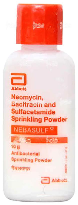 Nebasulf Sprinkling Powder is a powerful combination medicine that effectively treats bacterial skin infections. It works by preventing the growth and multiplication of infection-causing bacteria on the skin. The key ingredients in Nebasulf Sprinkling Powder are Neomycin, Bacitracin, and Sulfacetamide, which target various types of bacteria commonly found in skin infections. Neomycin and Sulfacetamide are effective against both gram-positive and gram-negative bacteria, while Bacitracin specifically targets gram-positive bacteria.