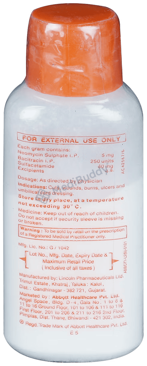 Sulphacetamide(60mg) + Neomycin(5mg) + Bacitracin(250IU)