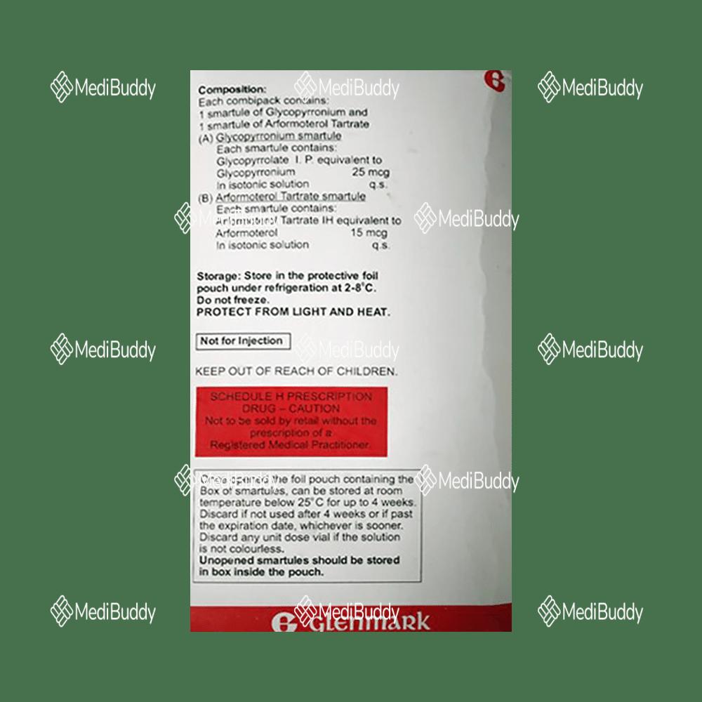 The Nebzmart-GF Combipack Smartule contains a combination of two important medicines: Arformoterol, which is a long-acting beta2-adrenergic agonist, and Glycopyrronium, an anti-cholinergic. Arformoterol works by relaxing the muscles in the airways, allowing air to flow more easily into and out of the lungs. On the other hand, Glycopyrronium helps reduce secretions in the airways. Together, these medicines provide relief from COPD symptoms.