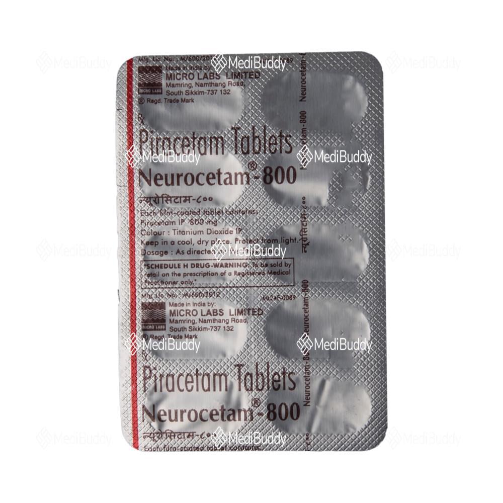 Neurocetam 800 Tablet is a medication used to treat various conditions affecting the brain. It is commonly prescribed for Alzheimer's disease, stroke, memory loss in Parkinson's disease, age-related memory loss, head injury, myoclonus (a movement disorder), memory disorders, vertigo, and dyslexia in children above 8 years. The active ingredient in Neurocetam 800 Tablet is Piracetam, which acts on the brain and nervous system to improve communication between nerve cells and protect the brain.