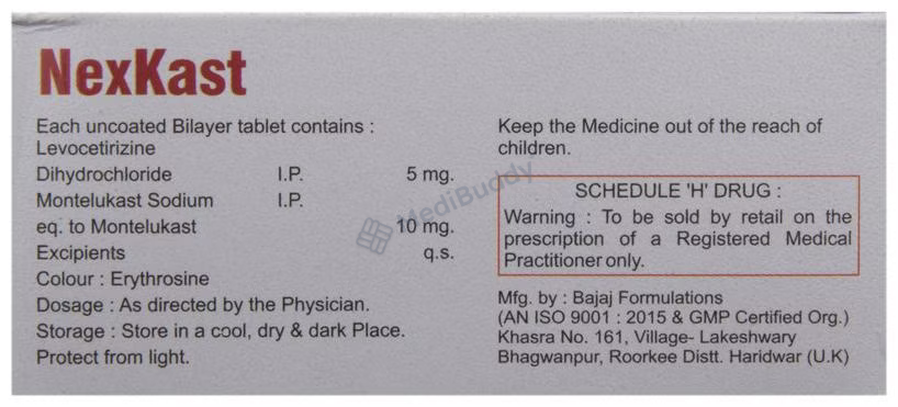 When taking Nexkast Tablet, it is important to be cautious when consuming alcohol. It is advised to consult your doctor regarding alcohol consumption while on this medication.