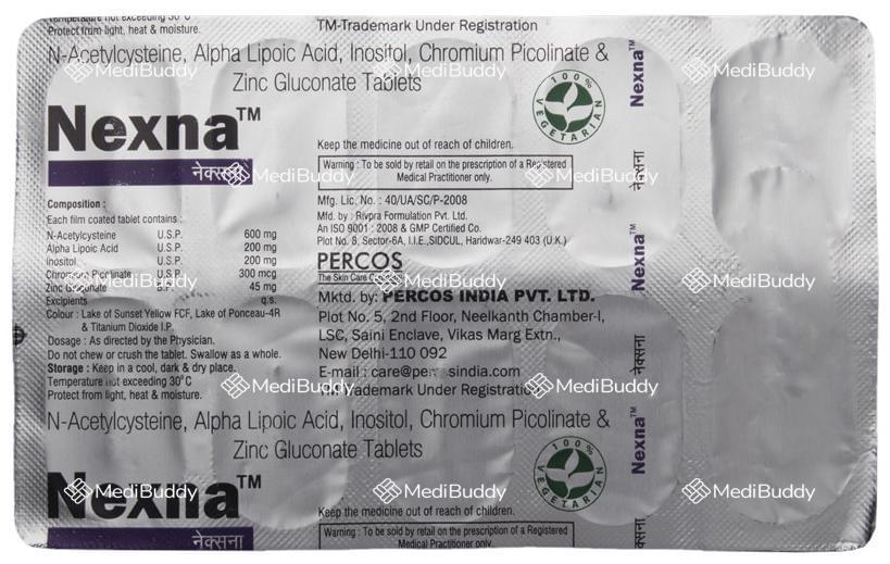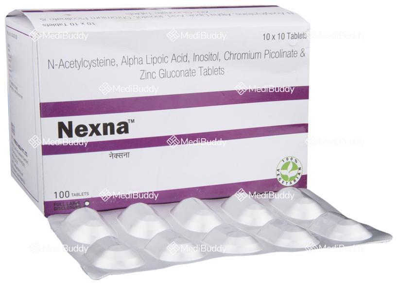 Nexna Tablet is a health supplement designed specifically for women, containing a unique blend of key ingredients such as N-acetylcysteine, Alpha Lipoic Acid, Inositol, Chromium Picolinate, and Zinc Gluconate. These ingredients work together to help manage the symptoms of Polycystic Ovarian Syndrome (PCOS) by regulating hormonal balance and blood sugar levels. The formulation also boasts powerful antioxidants that aid in neutralizing and eliminating free radicals that cause damage to the body.