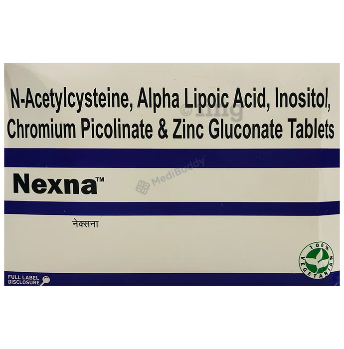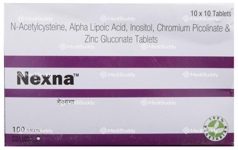 Available in a convenient tablet form, Nexna Tablet is to be used as directed on the label or as advised by a healthcare professional. It belongs to the class of nutritional supplements and is particularly beneficial for conditions like acanthosis nigricans, hirsutism, psoriasis, skin tags, and PCOS. It facilitates improved ovulation, hormonal balance, and fertility in women with PCOS, while also aiding in blood sugar control and insulin utilization. It is important to consult a doctor before starting Nexna Tablet, especially if pregnant, planning to conceive, or breastfeeding.