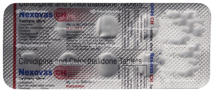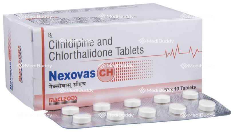 Nexovas CH Tablet is a medication specifically formulated to treat hypertension, commonly known as high blood pressure. This condition is characterized by persistently elevated pressure in the blood vessels, which can lead to various health complications such as heart diseases and irregular heartbeat. The tablet is classified as an antihypertensive medication, which means it helps in lowering high blood pressure and reducing the risk of stroke and heart attack.