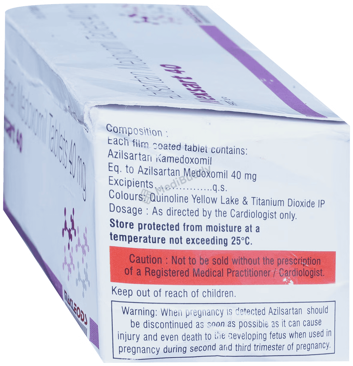 In case of any severe side effects such as significant weight loss, persistent diarrhea, or allergic reactions, it is vital to seek immediate medical attention. Do not take Nexsart 40 Tablet if you are allergic to 'azilsartan medoxomil' or any of its components. Additionally, avoid using this medication if you are pregnant beyond three months, have diabetes or kidney failure, or are taking blood pressure-lowering drugs containing aliskiren. Inform your doctor about any other medications or supplements you are taking to avoid potential interactions.