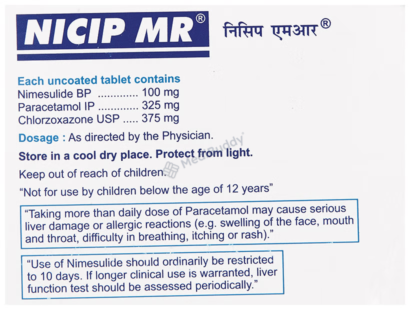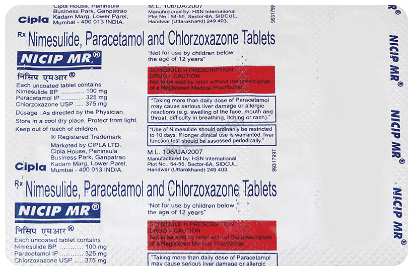 Nimesulide(100mg) + Paracetamol(325mg) + Chlorzoxazone(375mg)