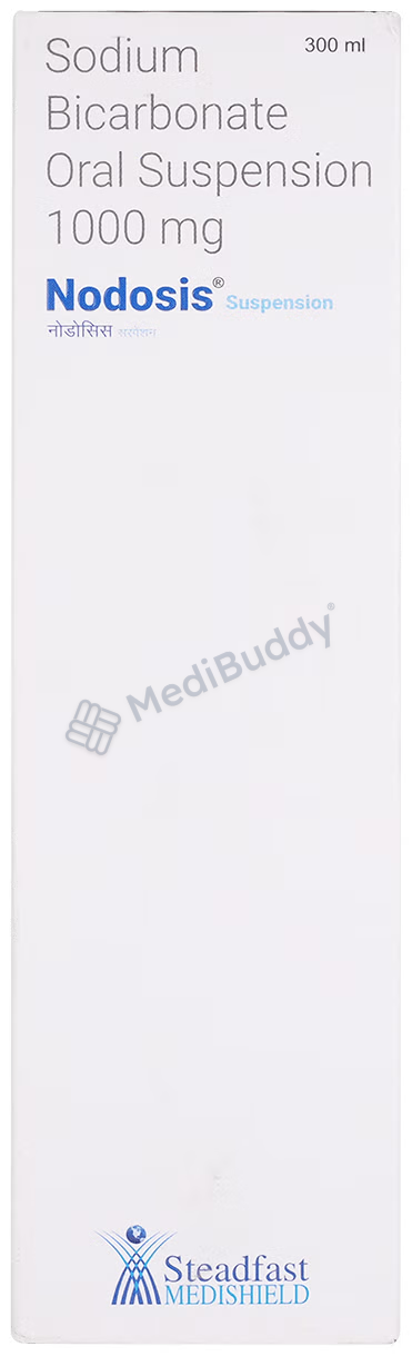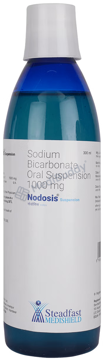 Nodosis Suspension 300 ml, belonging to the category of alkalinizing agents, serves to rebalance the acid-alkaline equilibrium within the body. Commonly prescribed for conditions such as acid indigestion, heartburn, sour stomach, and stomach upset, it may also be recommended to counter excessively acidic blood or urine levels. Nodosis Suspension 300 ml contains Sodium Bicarbonate as the active ingredient, effectively countering stomach acidity to relieve symptoms. Potential side effects, such as dry mouth, increased urination, and thirst, are generally mild and transient. Yet, in case of persistent or worsening side effects, consulting your doctor is advised.