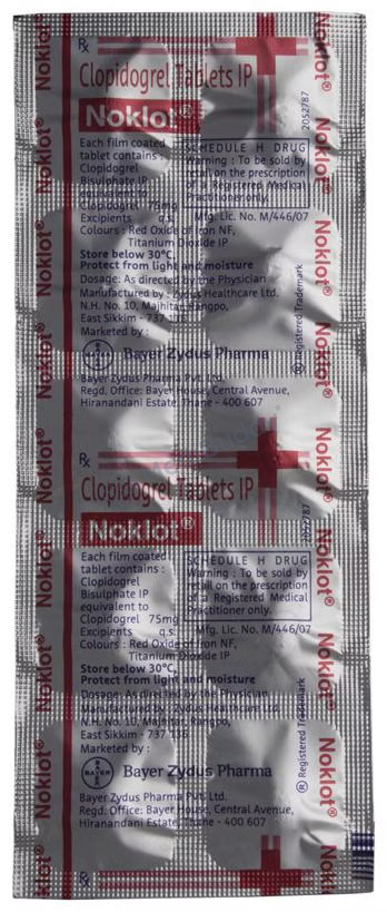 Noklot Tablet, also known as Noklot 75mg Tablet, is an antiplatelet medicine classified as a blood thinner. It is primarily prescribed to individuals at high risk of heart disease to prevent the formation of harmful blood clots within the blood vessels. By preventing the clots, Noklot Tablet helps lower the chances of heart attacks and strokes, making it a vital medication for heart protection.