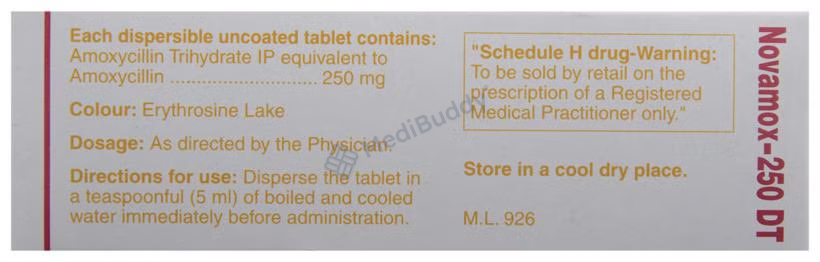 Overall, it is essential to follow the instructions provided by your healthcare provider to ensure the safe and effective use of Novamox 250 DT Tablet.