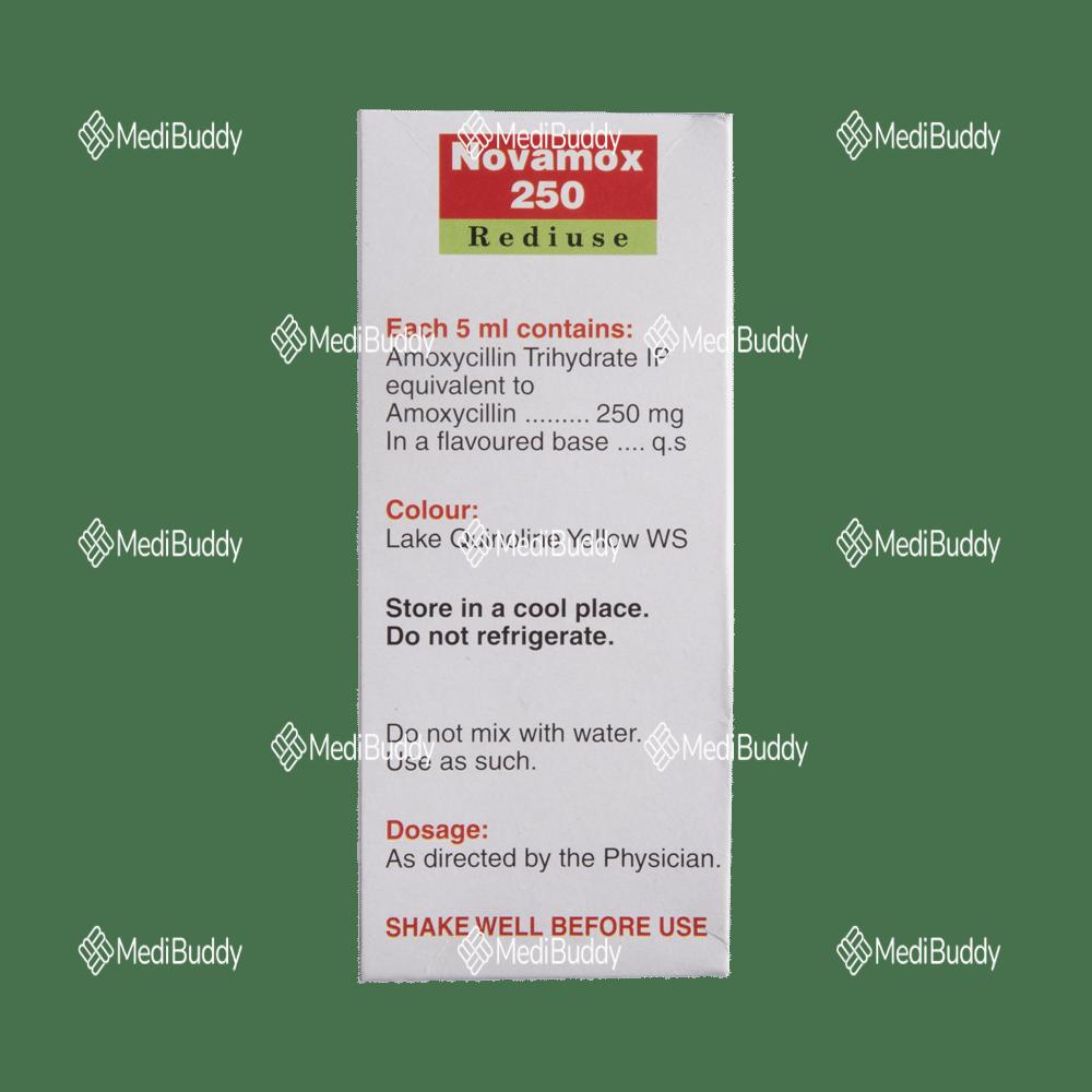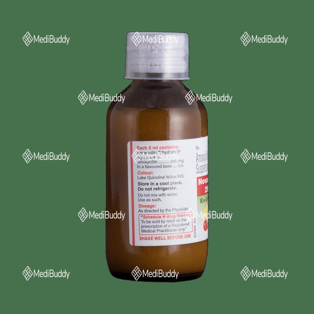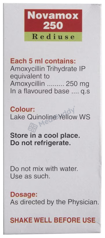 To use Novamox 250 Rediuse Oral Suspension, carefully follow your doctor's instructions regarding the dosage and duration of treatment. Before taking the medication, read the label for directions. Use a measuring cup to ensure accurate dosage and take the suspension by mouth. Remember to shake the bottle well before each use. You can take Novamox 250 Rediuse Oral Suspension with or without food, but it's advisable to take it at the same time each day for consistency.