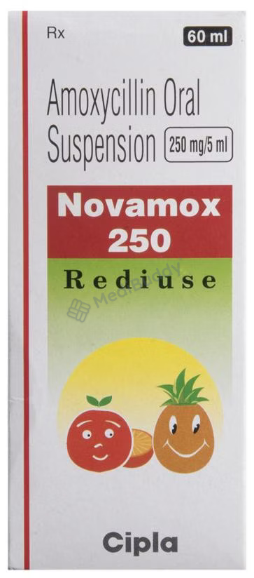 Novamox 250 Rediuse Oral Suspension is a medication used to treat various bacterial infections affecting different parts of the body. It is effective in treating infections in the throat, ears, nasal sinuses, respiratory tract (such as pneumonia), urinary tract, skin, soft tissue, and typhoid fever. In addition to combating these infections, Novamox 250 Rediuse Oral Suspension can also help eliminate a specific type of bacteria called H. pylori in individuals with peptic ulcer disease.