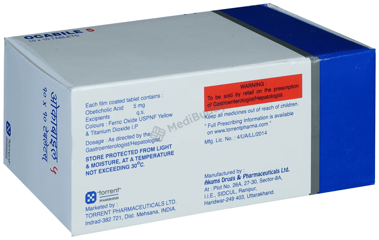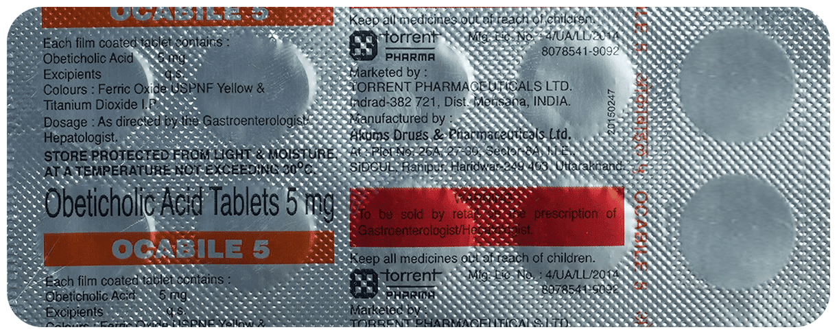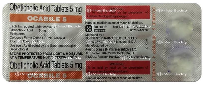 Ocabile 5 Tablet is a medication used in the treatment of primary biliary cirrhosis. It works by reducing the production of bile acid and increasing its removal from the liver. By doing so, it helps improve liver function and prevent the toxic effects of excessive bile acid in the liver.