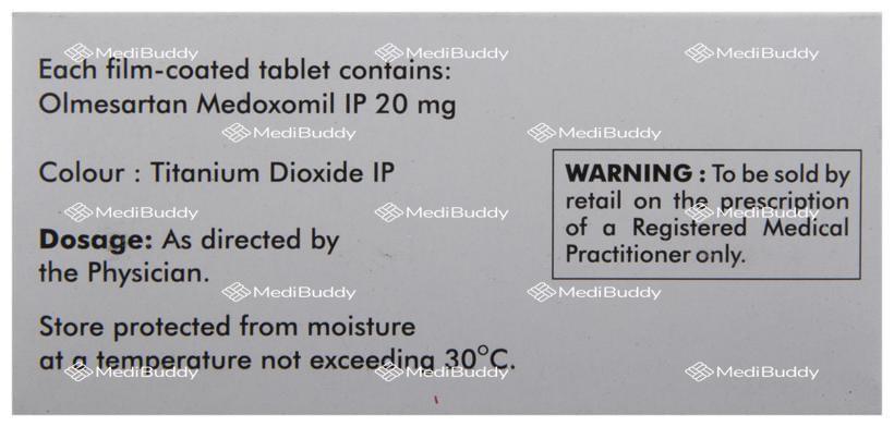 Olmat 20 Tablet, also known as Olmat-20 Tablet 10's, is a medication prescribed for treating hypertension (high blood pressure) and is designed to reduce the risk of heart attacks, stroke, and kidney problems. Hypertension is a condition where blood pressure is elevated, exerting more force on blood vessel walls. This puts a strain on the heart to circulate blood effectively throughout the body. Heart attacks and strokes occur when blood flow to the heart or brain, respectively, is obstructed.