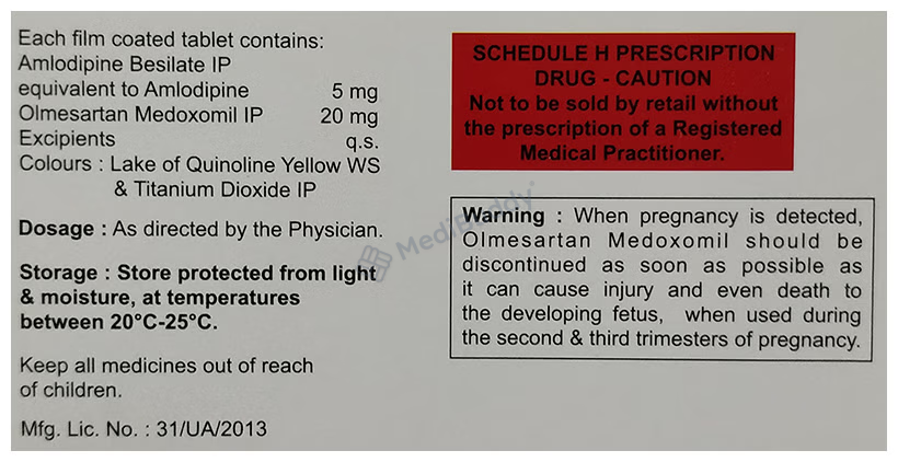 Olmecaid-A 20 Tablet is primarily used in the treatment of hypertension, which is a medical condition characterized by high blood pressure. This medication helps to lower blood pressure levels in individuals suffering from this condition. It is important to follow the dosage prescribed by a healthcare professional to effectively manage hypertension.Olmecaid-A 20 Tablet can be a beneficial option for individuals looking to control their blood pressure and improve their overall health.