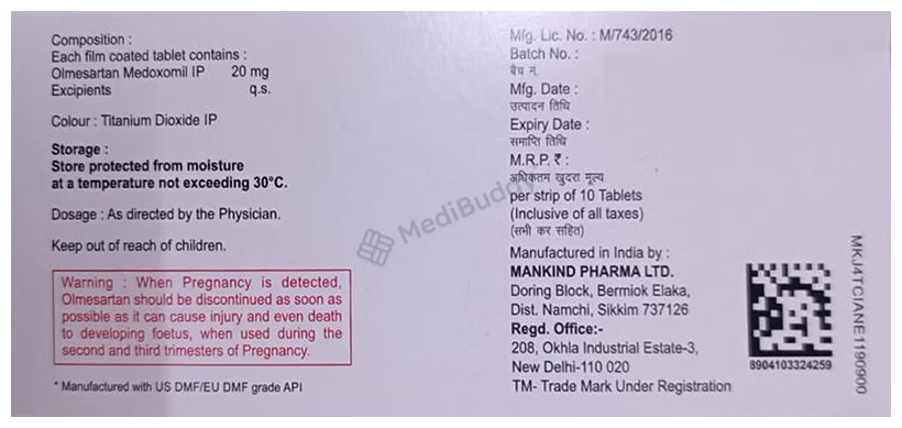 Lastly, before starting Olmetime 20 Tablet, inform your doctor about any kidney or liver issues. Pregnant or breastfeeding individuals should avoid this medication. Regular monitoring of kidney function, blood pressure, and blood potassium levels is typically done while on this treatment.