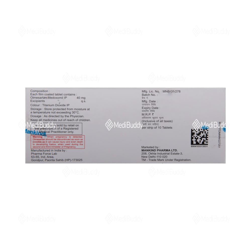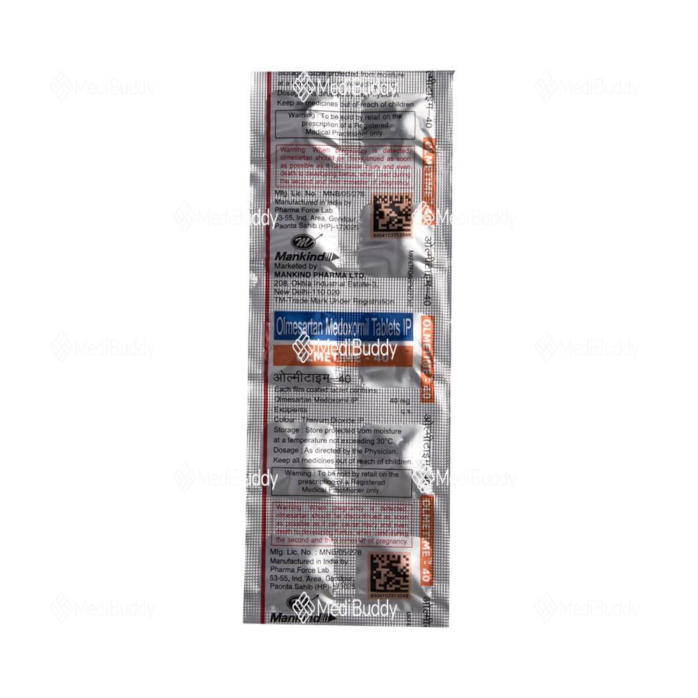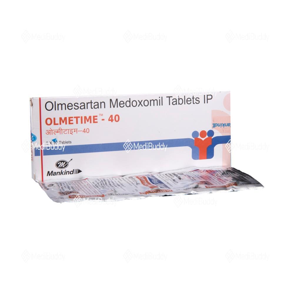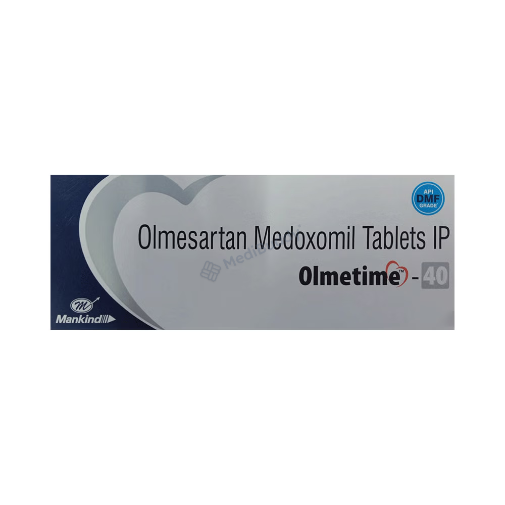 Olmetime 40 Tablet is prescribed for hypertension, which is high blood pressure. It helps lower blood pressure to prevent heart attacks and strokes. This medicine can also maintain kidney function in diabetes patients. It is important to take Olmetime 40 Tablet regularly, even if you feel fine, as high blood pressure often has no symptoms. Lifestyle changes like exercise, weight loss, and following doctor’s advice on diet can complement the medicine. Some people may experience minor side effects initially, but they usually improve over time. Prior medical conditions like kidney or liver issues should be disclosed to the doctor before starting this medication. It is not recommended for use by pregnant or breastfeeding women. Regular monitoring of kidney function, blood pressure, and potassium levels is advised while on this treatment.