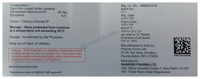 Olmetime 40 Tablet should not be used during pregnancy due to the known risk to the developing baby. In rare life-threatening situations, a doctor may prescribe it if benefits outweigh risks. Always consult your doctor for guidance.