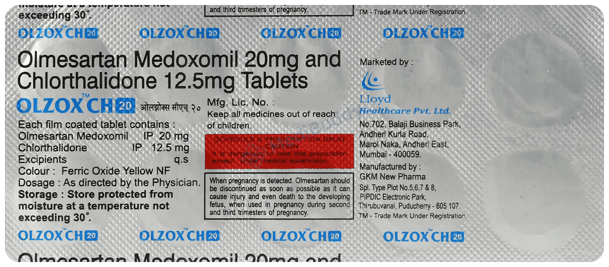 Olmesartan Medoxomil(20mg) + Chlorthalidone(12.5mg)