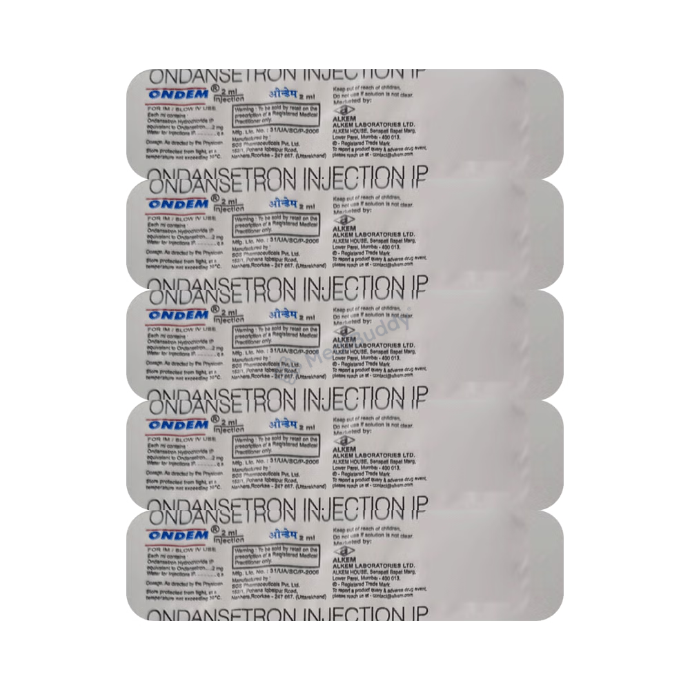 Ondem Injection is considered safe for use in patients with kidney disease without needing dose adjustment. However, it is advised to disclose any underlying kidney conditions to your doctor. Limited data is available for prolonged use of this medication.