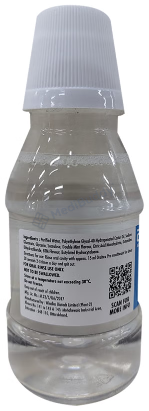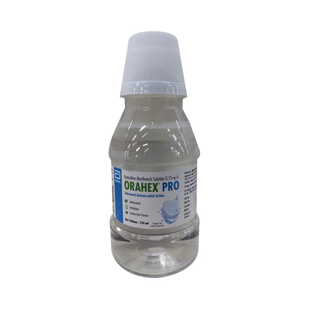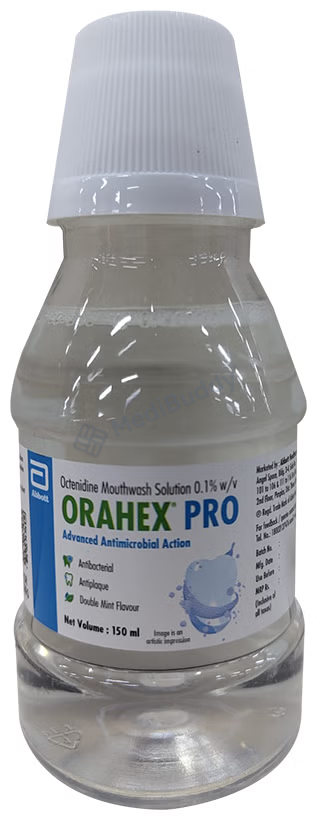 Similarly, Orahex Pro Double Mint Mouth Wash 150 ml falls under the category of antiseptics, serving to prevent periodontitis and gingivitis. This particular formulation contains Octenidine, a key ingredient that acts by halting the growth of fungi, bacteria, and other microorganisms responsible for infections. It is essential to adhere to the instructions provided by your dentist regarding the frequency of use based on your specific oral health condition. There may be instances where teeth staining occurs, which typically resolves over time without the need for medical intervention. However, persistent or worsening side effects should prompt consultation with a healthcare provider. Individuals allergic to Octenidine or any other components should inform their doctor before using the mouth wash. Notably, Orahex Pro Double Mint Mouth Wash 150 ml is intended for oral rinse only and should not be ingested. Prior consultation is recommended for pregnant or nursing individuals, and caution is advised when using the mouth wash in elderly patients or children unless directed by a doctor.