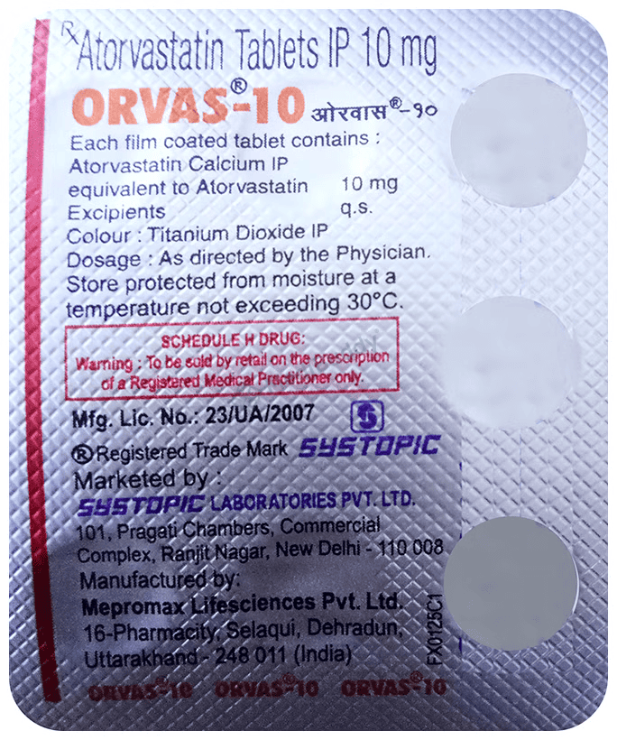 Orvas 10 Tablet is a beneficial medication, especially for individuals dealing with high cholesterol levels. Classified as a statin, Arovas works by decreasing the levels of "bad" cholesterol (LDL) in the body while simultaneously increasing the levels of "good" cholesterol (HDL). By regulating cholesterol levels effectively, this medication plays a vital role in reducing the risk of heart diseases, ultimately contributing to a healthier and longer life span.