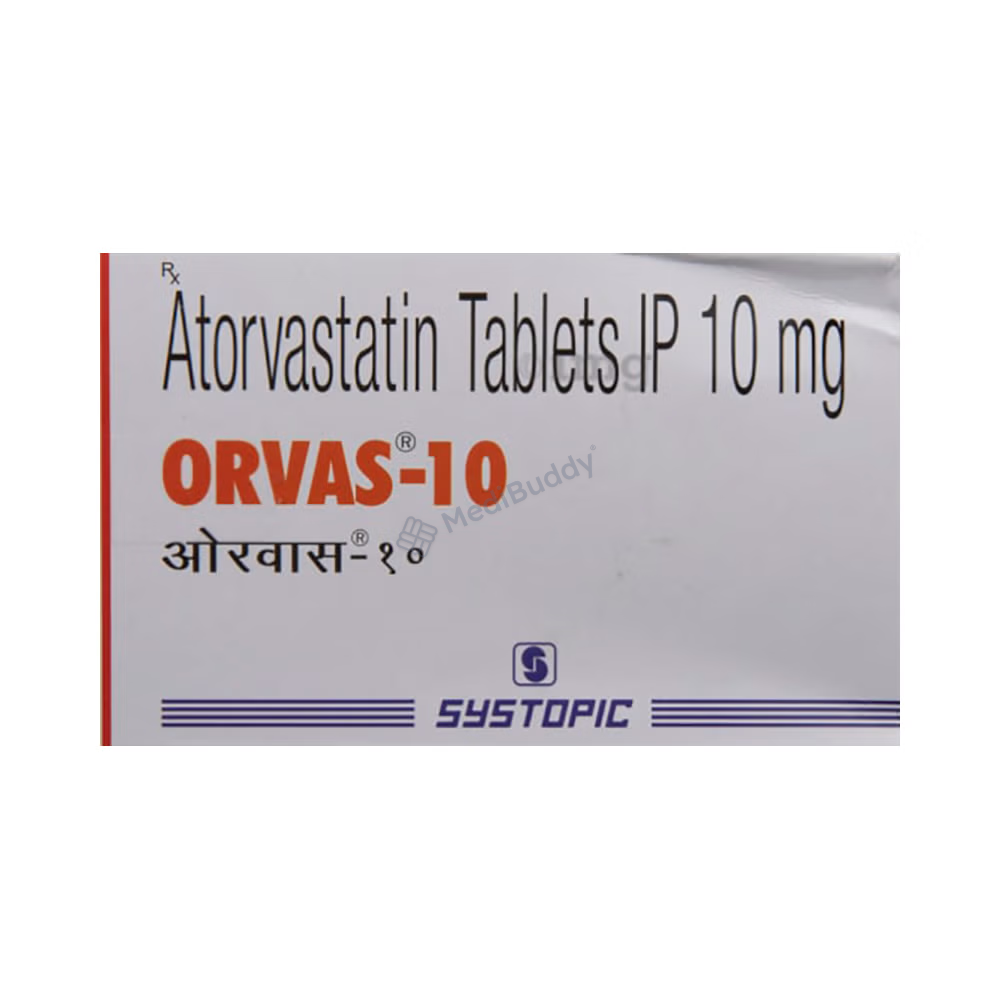 Orvas 10 Tablet is a medication that falls under the category of statins and is commonly used to lower cholesterol levels, reducing the risk of heart diseases. Cholesterol, a fatty substance, can accumulate in blood vessels, causing narrowing and potentially leading to heart attacks or strokes. It is essential to regularly check cholesterol levels and follow a holistic treatment approach, including a healthy diet, exercise, and lifestyle changes. Orvas 10 Tablet is recommended for long-term use under medical guidance to maintain cholesterol levels and reduce the risk of heart-related conditions.