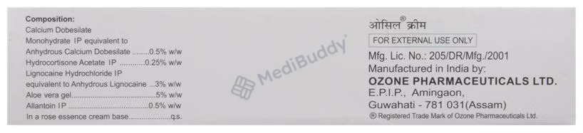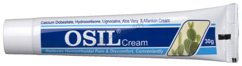 Osil Cream is specially formulated to treat piles, also known as hemorrhoids. It effectively alleviates pain, swelling, itching, and discomfort experienced during bowel movements by providing a soothing effect. The cream aids in the healing process of hemorrhoids when used as per the doctor's instructions. To ensure optimal results, clean and dry the affected area before applying the cream. It is important to follow the recommended dosage and duration of use to avoid worsening of the condition. While temporary side effects like burning, irritation, itching, or redness at the application site may occur, they usually resolve on their own. If these side effects persist, consult your doctor promptly. Remember not to get the cream in your eyes, nose, or mouth, but if accidental exposure happens, rinse with water immediately and seek medical help. If your condition does not improve despite regular use, consult your doctor for further evaluation.
