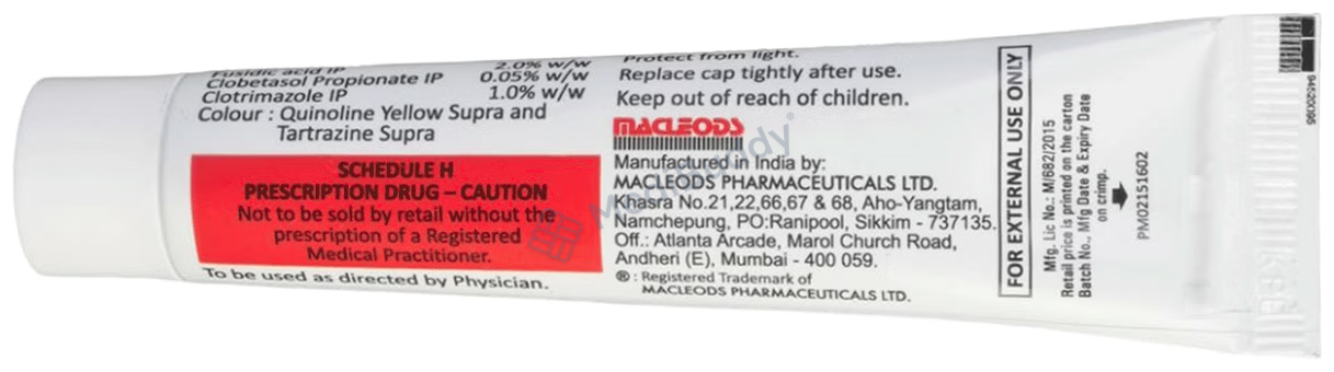 Clobetasol(0.05% w/w) + Clotrimazole(1% w/w) + Fusidic Acid(2% w/w)