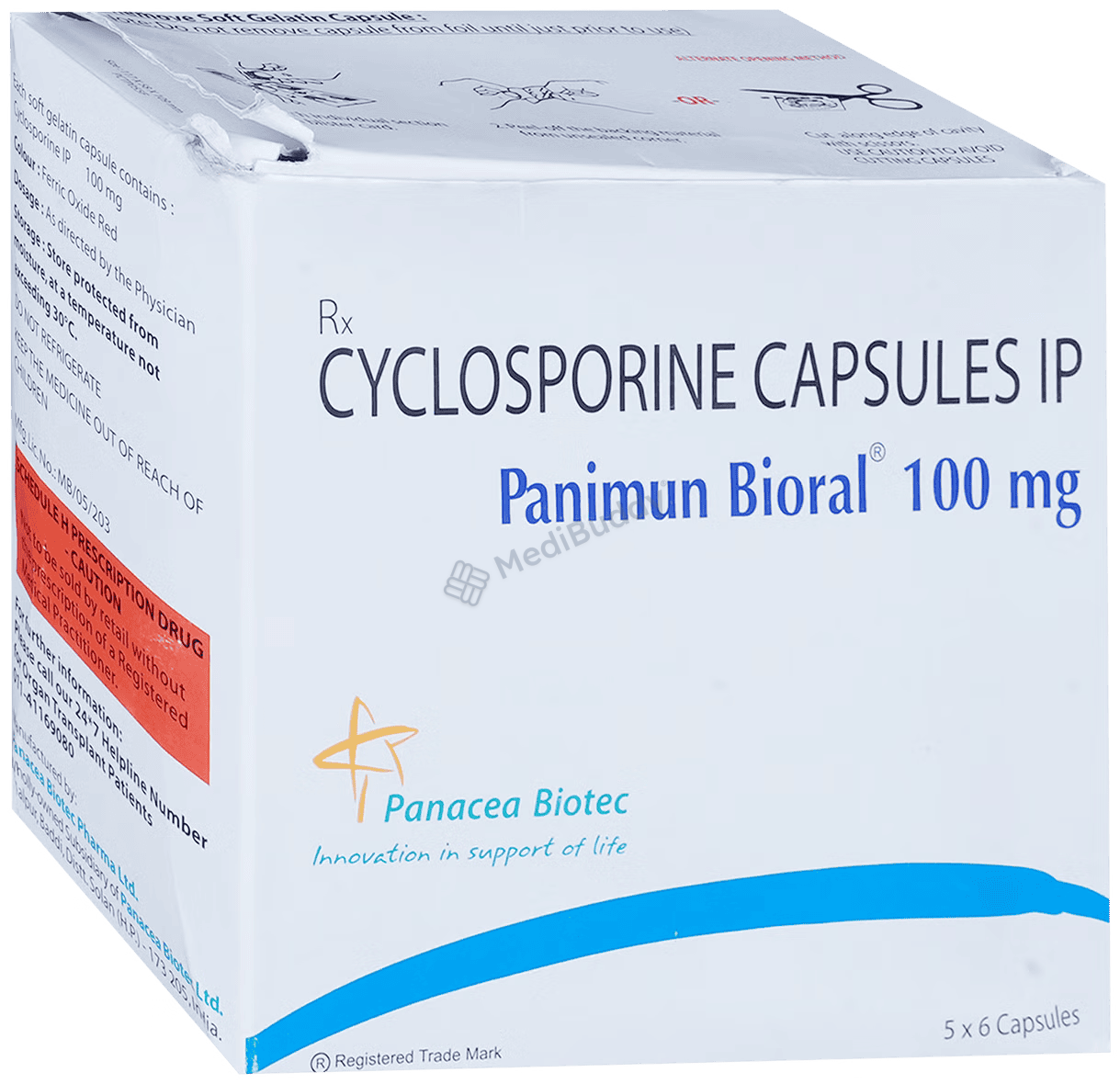 Panimun Bioral 100mg Capsule is used to prevent organ rejection after transplants like liver, kidney, heart, or bone marrow. It also treats nephrotic syndrome, severe rheumatoid arthritis, and psoriasis by suppressing the immune system. This medicine helps the body accept new organs, relieve arthritis symptoms, slow joint damage, improve skin in psoriasis, and reduce inflammation and swelling in nephrotic syndrome. Taking the correct dose is important for maximum benefit. Side effects include headache, increased hair growth, high blood pressure, diarrhea, and more infections. Regular medical tests are needed while on this medicine to monitor effects.