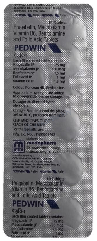 Benfotiamine(7.5mg) + Folic Acid(1mg) + Methylcobalamin(750mcg) + Pregabalin(75mg) + Vitamin B6 (Pyridoxine)(1.5mg)