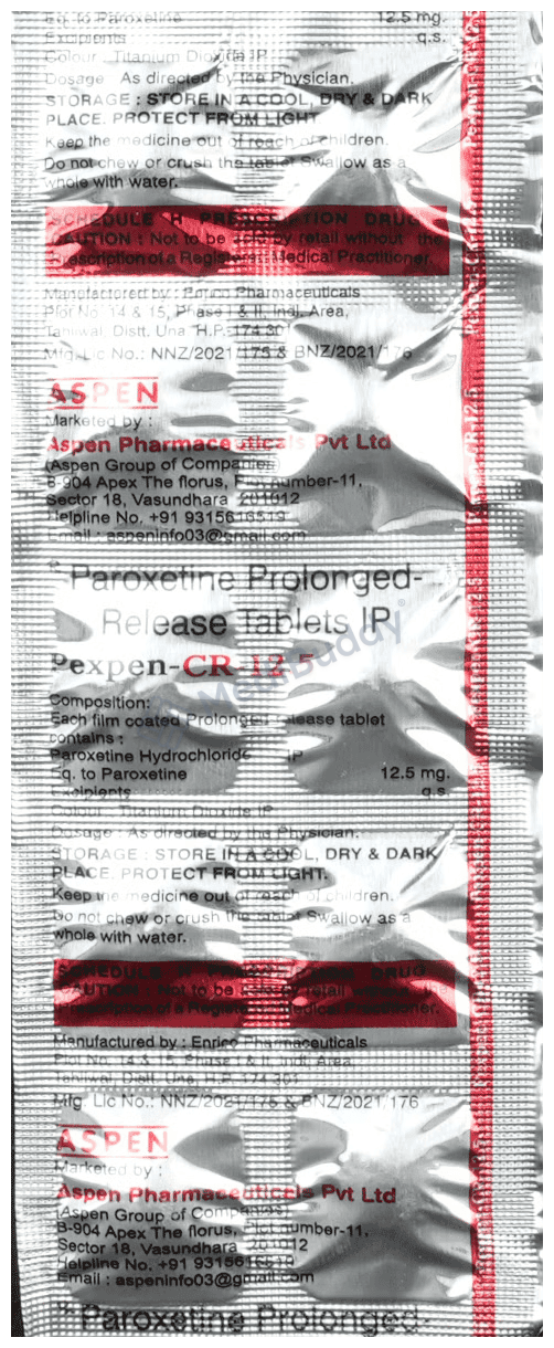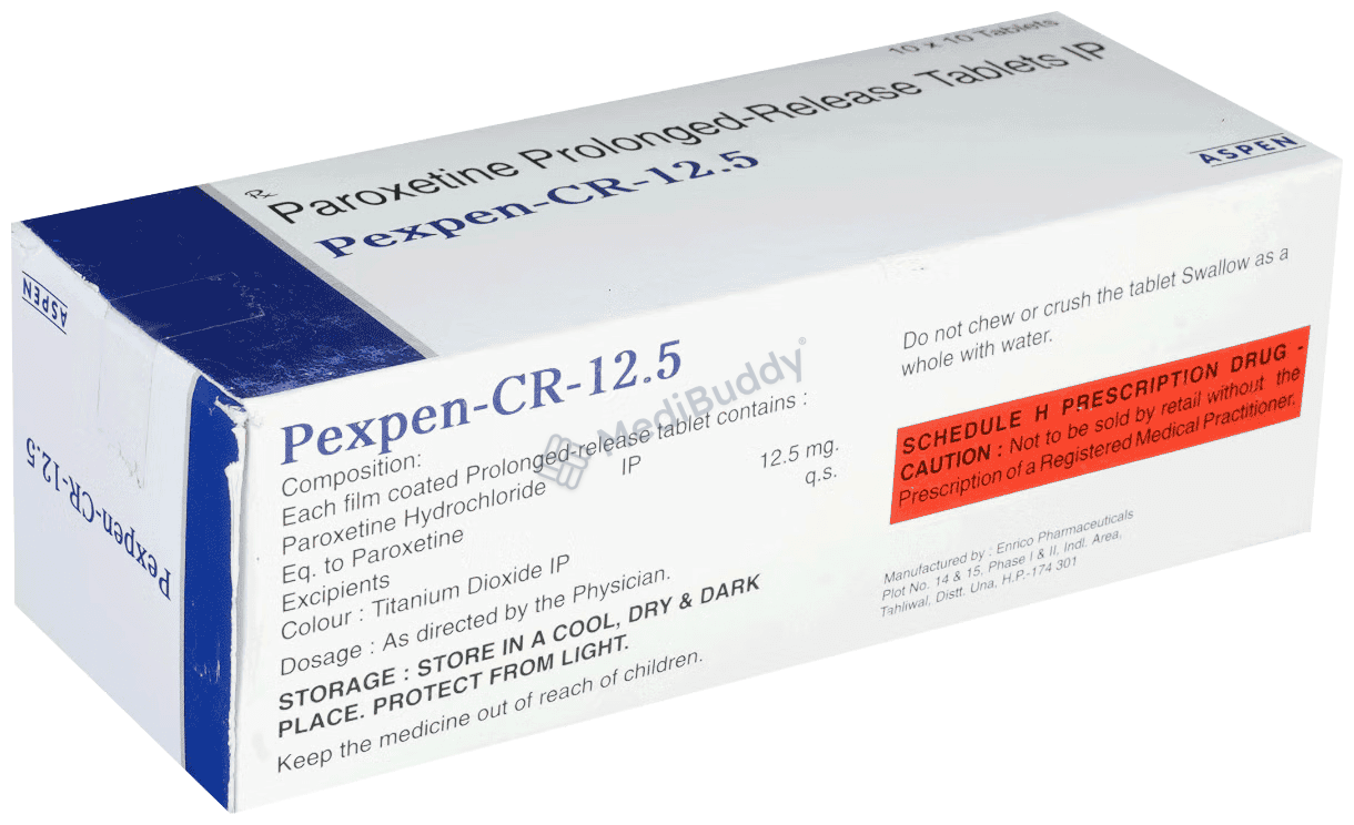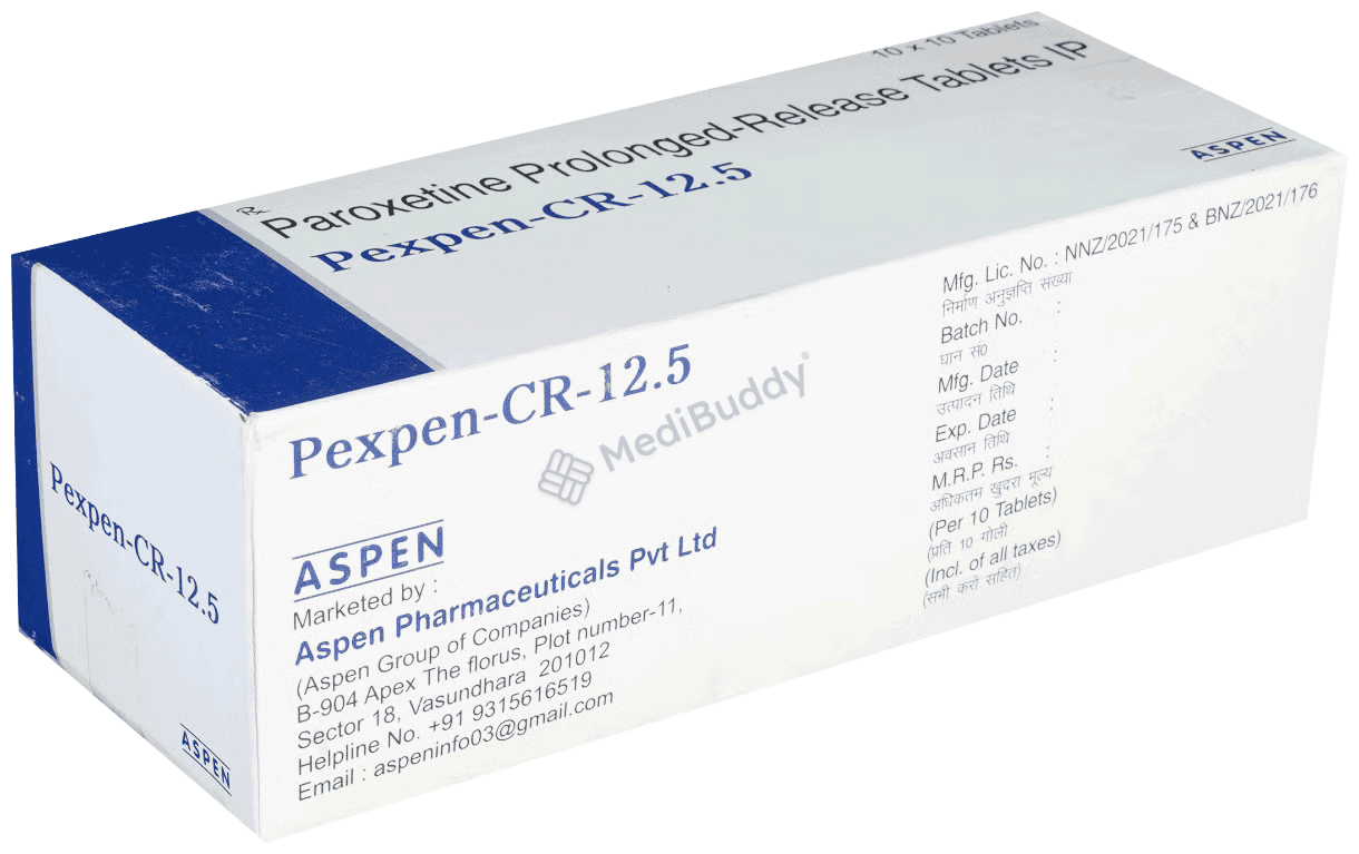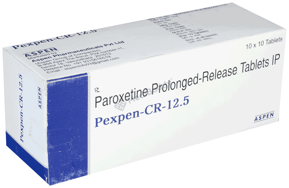 Pexpen-CR 12.5 Tablet is a type of antidepressant known as a selective serotonin reuptake inhibitor (SSRI) used to treat depression and anxiety-related conditions like obsessive-compulsive disorder and panic disorder. It works by increasing serotonin levels in the brain to improve mood and reduce anxiety.