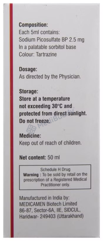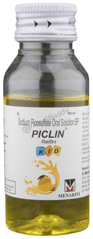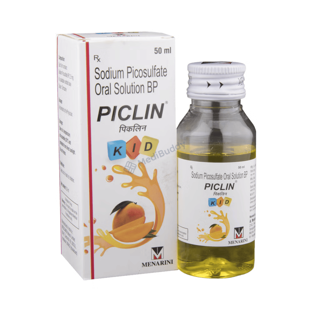Constipation can be a common problem that causes discomfort and pain. Piclin Kid Oral Solution helps relieve these symptoms, improving quality of life for individuals experiencing constipation. The medicine contains Sodium picosulphate, a stimulant laxative that prevents water absorption in the colonic lumen and stimulates the colon's propulsive activity, promoting water accumulation. This mechanism of action makes Piclin Kid Oral Solution effective in cases of constipation associated with various conditions such as piles, anal fissure, hernia, cardiovascular disorder, endoscopy, bowel clearance before radioscopy, pre/post-operative conditions, and in elderly or bed-ridden patients.