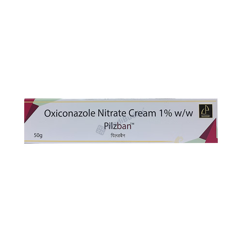 Pilzban Cream is an antifungal medicine that effectively treats fungal skin infections like athlete’s foot, jockey itch, thrush, ringworm, and dry, flaky skin by killing the infection-causing fungus. It is important to use the cream as directed by your doctor, applying it regularly to the affected area. Improvement is typically seen within 2 to 4 weeks of use. Possible side effects include a burning sensation, irritation, dryness, peeling, or blistering of the skin. Immediate medical attention is required if you experience severe allergic reactions such as rash, swelling, difficulty swallowing or breathing, dizziness, or nausea.