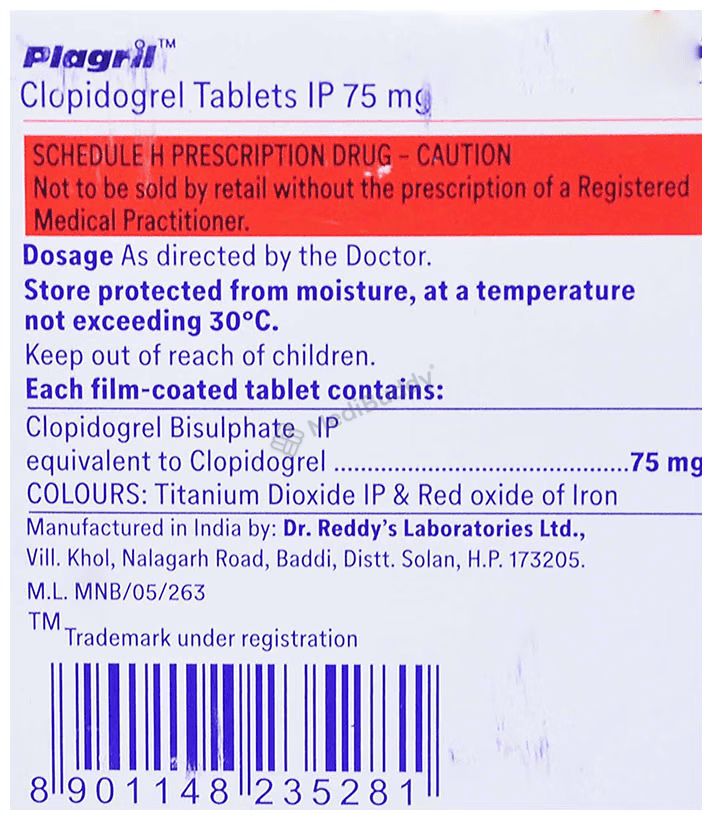 Consumption warning before consuming Plagril 75 Tablet
