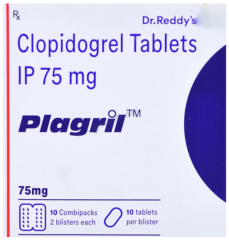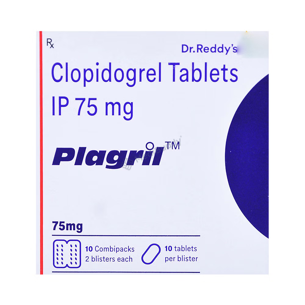 Plagril 75 Tablet is a vital antiplatelet medication designed to reduce the risk of harmful blood clots forming in the blood vessels, hence decreasing the likelihood of heart attacks or strokes. It is commonly prescribed for individuals at a high risk of heart disease, including those with peripheral vascular disease, recent heart attack or stroke, irregular heartbeats, and individuals who have undergone specific heart procedures like stenting. In combination with other medications, Plagril 75 Tablet is also used in the treatment of heart attacks and certain types of heart-related chest pain (unstable angina).