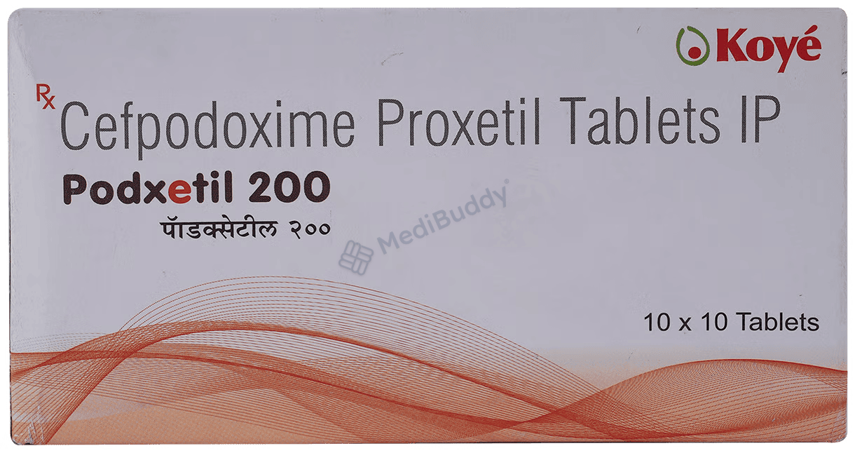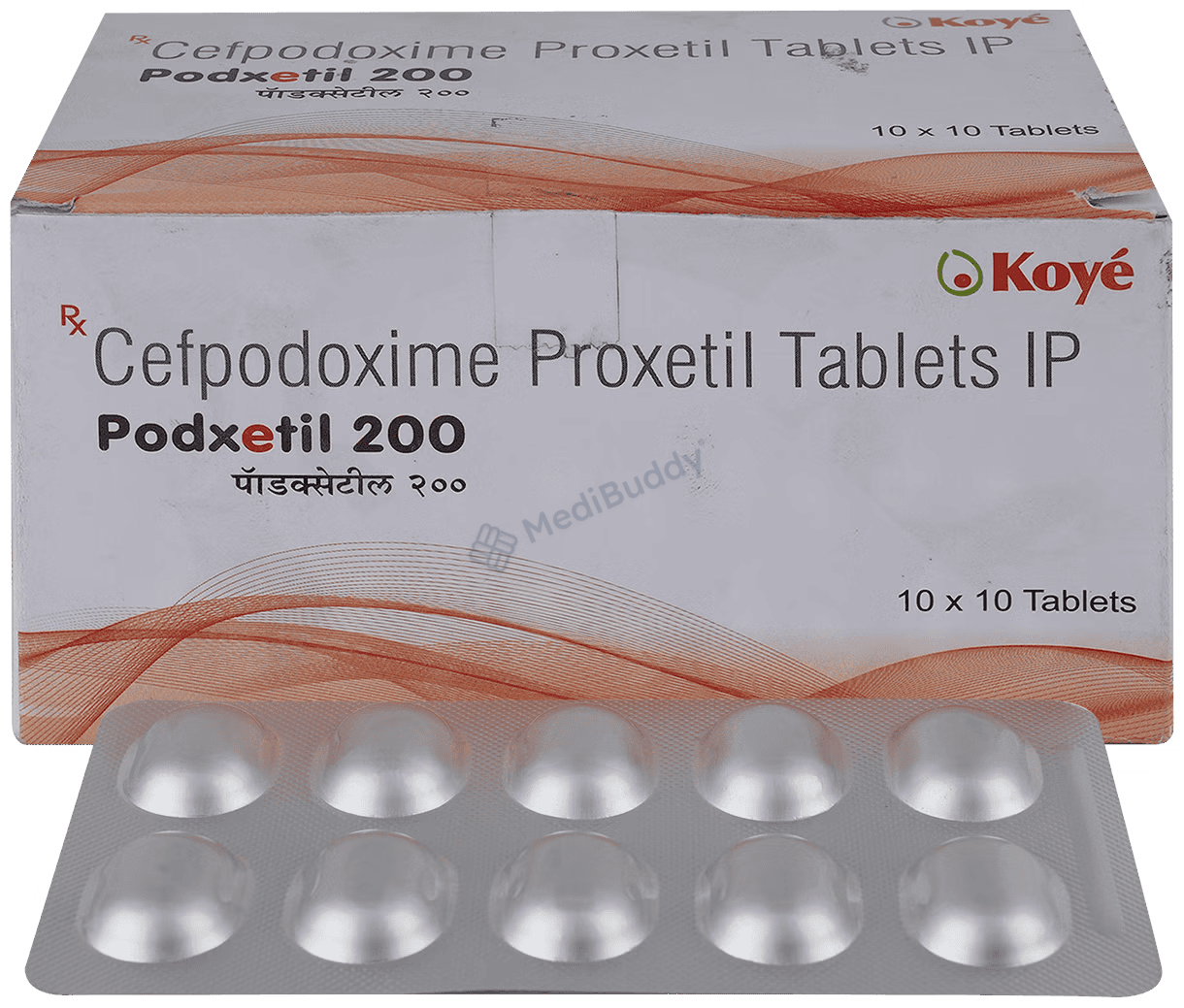 Podxetil 200mg Tablet is an antibiotic medication used to treat various bacterial infections in the body. It contains Cefpodoxime, which is classified as an antibiotic belonging to the cephalosporin group. This medication is effective in treating infections in different parts of the body such as the lungs, urinary tract, ear, nasal sinus, throat, skin, and more. By killing the bacteria causing the infection, Podxetil helps improve symptoms and aids in curing the infection.