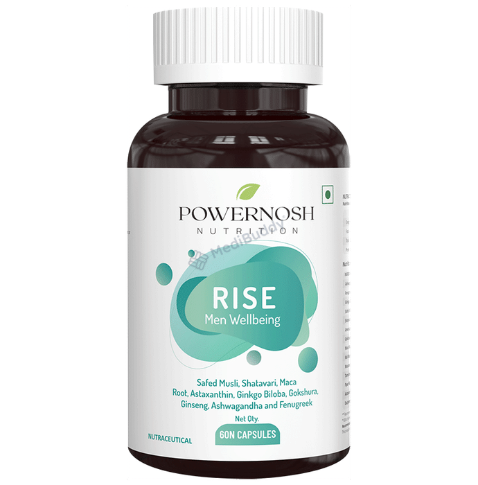 These capsules are targeted towards men facing sexual health challenges, low energy levels, and stress or anxiety issues. Marketed as a powerful solution for men's sexual health and wellness, the PowerNosh Nutrition Rise Men Sexual Wellbeing Veg Capsule comes in a pack of 60 capsules, providing a convenient supply for daily use.