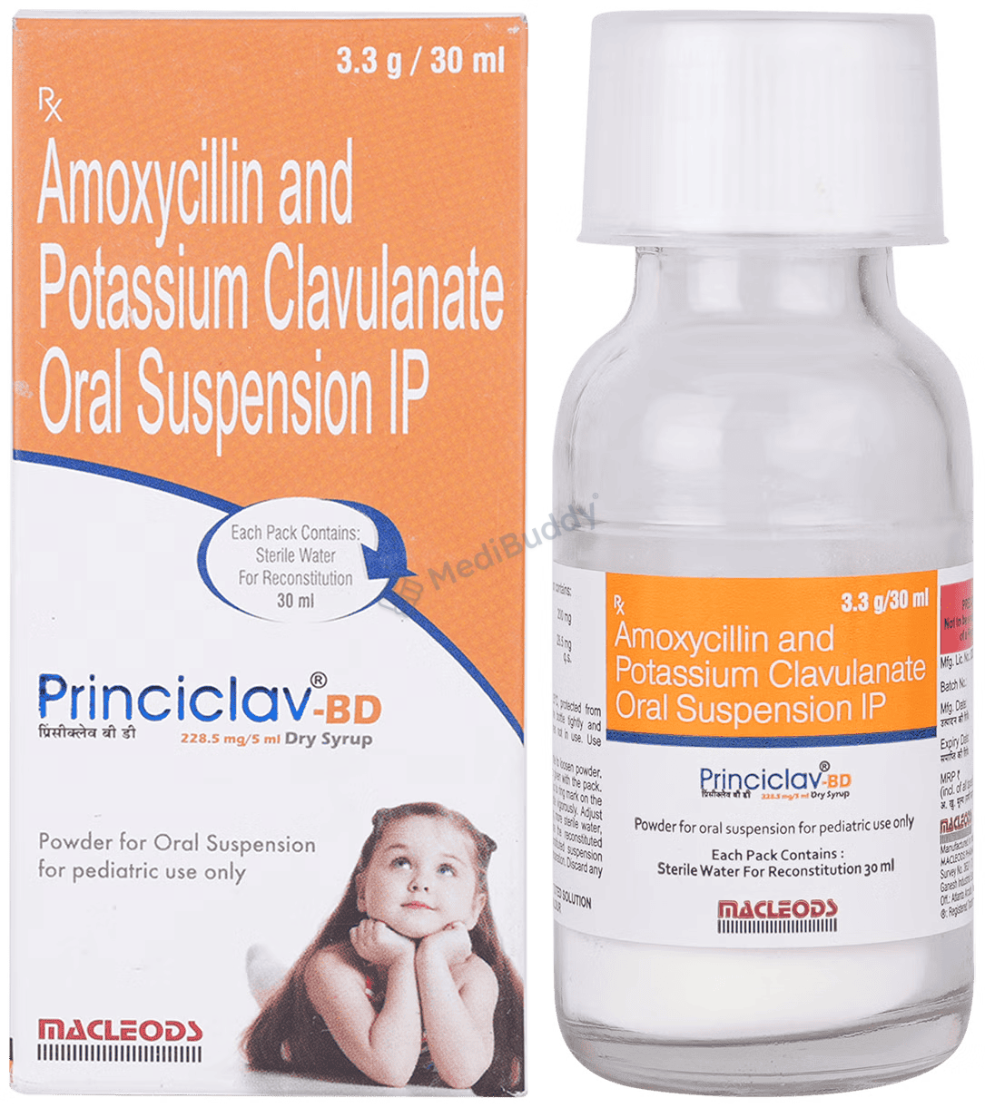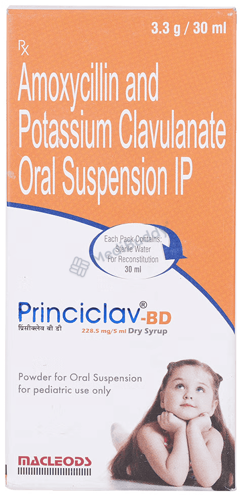 Moreover, Princiclav -BD Dry Syrup is also beneficial in the treatment of bacterial infections. This combination medication works by targeting and killing bacteria responsible for infections in different parts of the body, such as the ears, sinuses, throat, lungs, urinary tract, skin, teeth, joints, and bones. Amoxycillin halts bacterial growth, while clavulanic acid enhances amoxicillin's effectiveness and diminishes bacterial resistance. This broad-spectrum antibiotic is potent against a variety of gram-positive and gram-negative bacteria, providing relief from infections and promoting faster recovery.