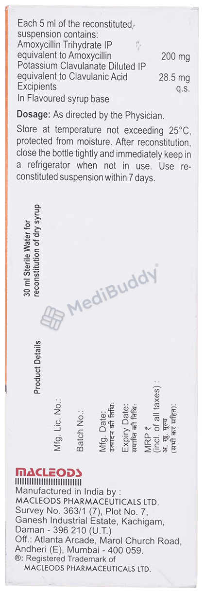Amoxycillin(200mg) + Clavulanic Acid(28.5mg)